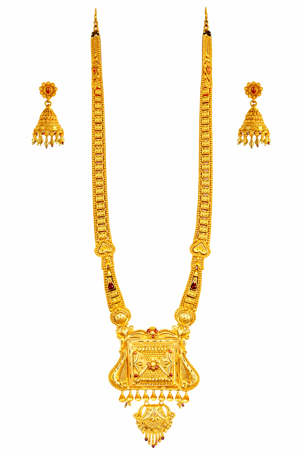 📿 Necklace Design: Long traditional chain with engraved pattern work